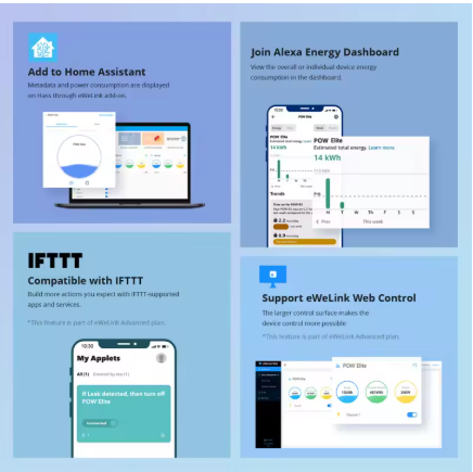 Support adding SONOFF devices to Home Assistant for control and automation through the eWeLink add-on. What's more, to better help you save energy usage, POW Origin joins Alexa Energy Dashboard, you can centrally view the overall or individual device energy consumption in the dashboard. If you subscribe eWeLink Advanced plan, POW Origin is also compatible with IFTTT and eWeLink Web control.